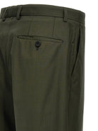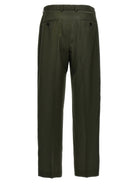 These sophisticated trousers feature a classic hook, button, and zip closure, along with a sharp ironed crease that adds refined structure to the relaxed silhouette. The rich olive green hue and functional pockets make them as practical as they are stylish.