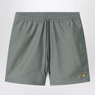 Featuring a sophisticated sage green colorway, these trunks include practical details like two side pockets and a back pocket with key holder for secure storage. The embroidered "C" logo adds signature Carhartt WIP branding, while the elasticated waistband with drawstring ensures a perfect, adjustable fit.