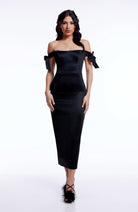 - Off-the-shoulder feature with bow detail, also comes with removable adjustable straps