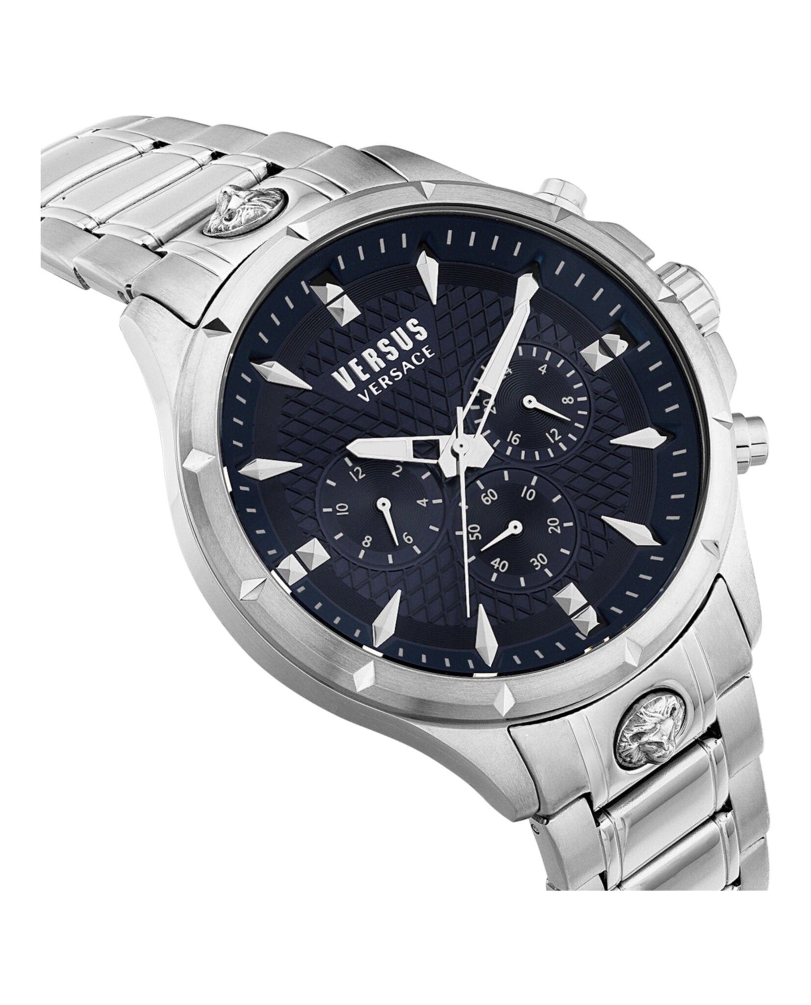 Make a bold statement with the Versus Versace Chrono Lion Chronograph Watch. This striking timepiece features a 45mm stainless steel case paired with a matching stainless steel bracelet, creating a sleek and sophisticated look.
