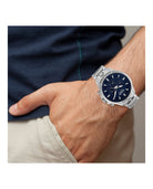 The stunning blue enamel dial houses a multifunction quartz chronograph movement, combining precision with style. With 5 ATM water resistance and a secure deployant buckle closure, this watch is built for both everyday wear and special occasions.