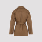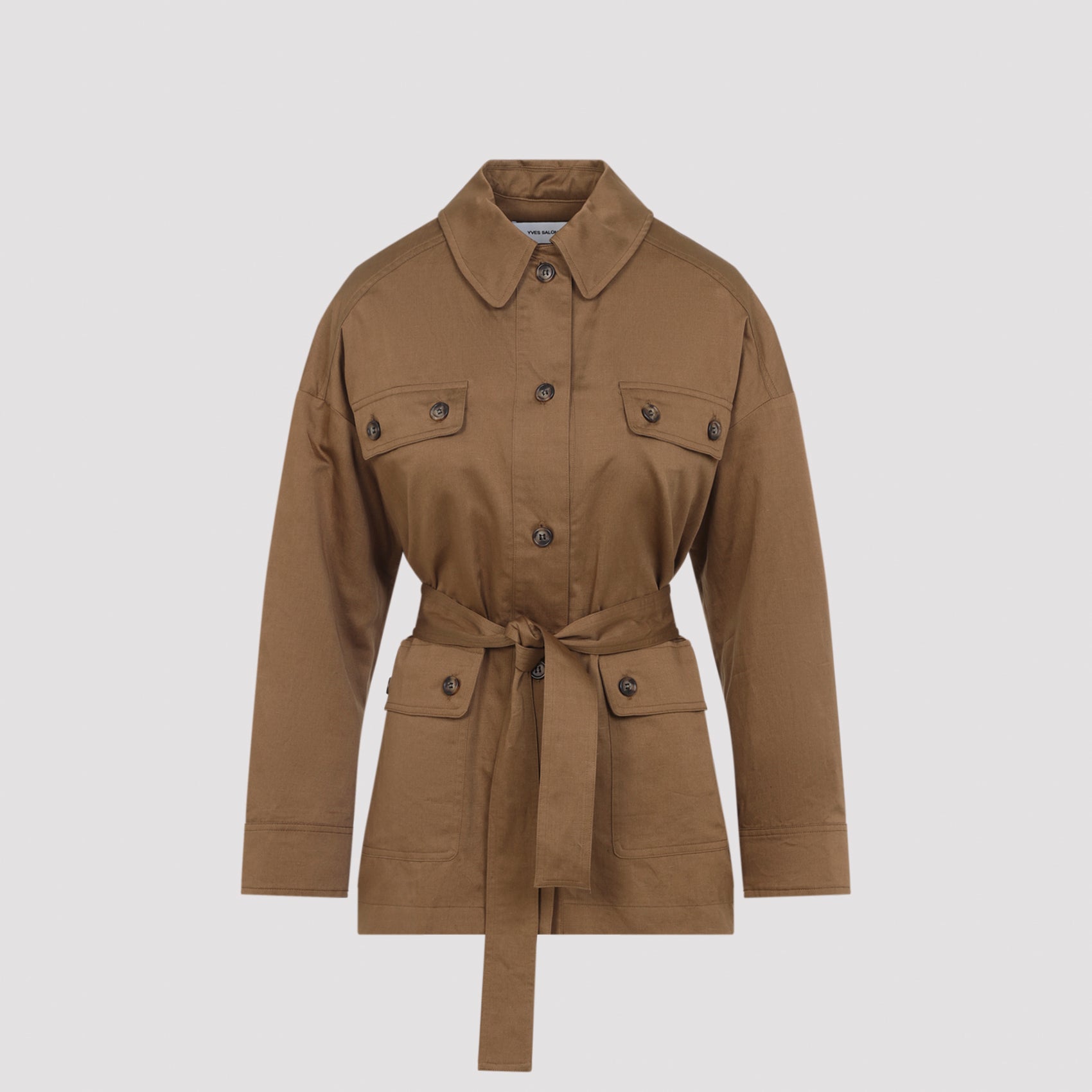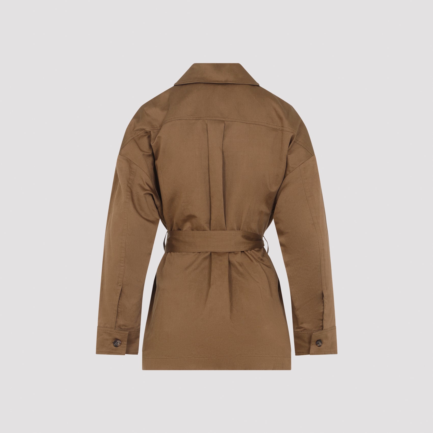 YVES SALOMON VIENNOS BROWN COTTON SHIRT JACKET. CRAFTED IN COTTON AND LINEN. POINTED COLLAR, FRONT BUTTONED FASTENING, CHEST FLAP BUTTONED POCKETS, SIDE FLAP BUTTONED POCKETS, TONAL ADJUSTABLE COTTON BELT, DROPPED SHOULDERS, LONG SLEEVES, BUTTONED CUFFS, STRAIGHT HEM.