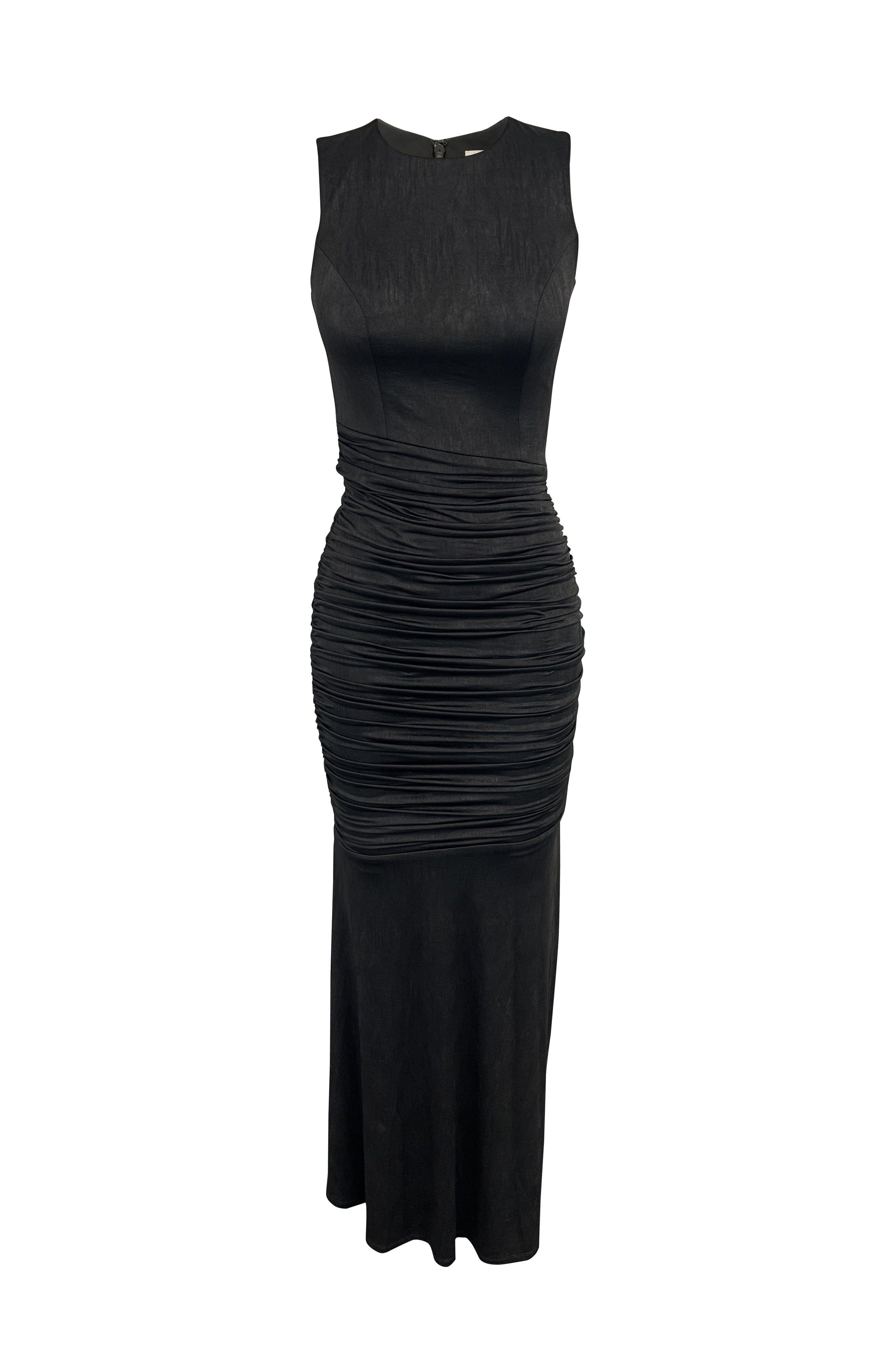 - Ruched design accentuates the waist for an effortless hourglass silhouette