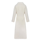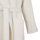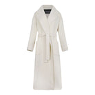 The timeless cream hue and wrap-style design with tie belt create a versatile piece that transitions seamlessly from casual weekend outings to polished office ensembles. Practical front pockets add functionality while maintaining the coat's refined aesthetic.