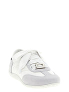 The classic lace closure is elevated with a distinctive front metal buckle detail, adding a touch of Roger Vivier's signature elegance to this casual silhouette. Set on a comfortable rubber sole, these sneakers seamlessly blend comfort with high-fashion aesthetics.