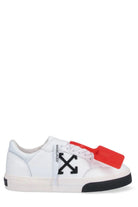 Elevate your sneaker game with the Off-White Vulc Low Sneaker, a statement piece that seamlessly blends streetwear edge with luxury craftsmanship. Featuring the brand's iconic arrow logo and signature red zip-tie detail, these white leather low-tops are instantly recognizable and effortlessly cool.