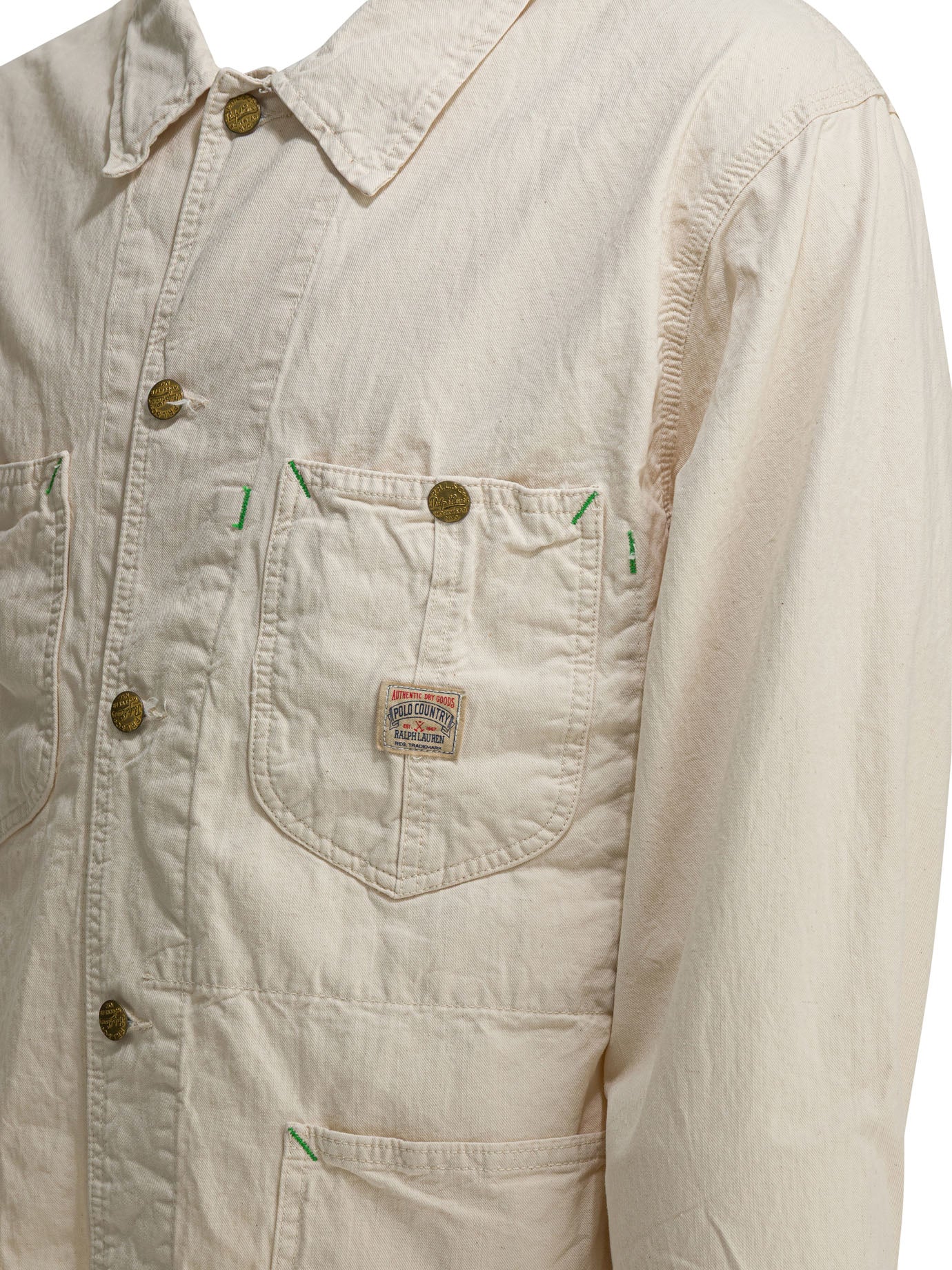 Introducing the "Waldron" Overshirt Jacket from Polo Ralph Lauren, a versatile layering piece that seamlessly bridges the gap between shirt and jacket. Crafted in a classic cream tone, this regular fit overshirt features a traditional collar, button-front closure with signature brass hardware, and multiple utility-inspired pockets for both style and function.