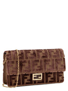 Elevate your evening ensemble with the Fendi Wallet on Chain Baguette in FF Jacquard Velvet. This luxurious piece features the iconic FF logo pattern in sumptuous velvet, creating a rich texture that exudes sophistication.