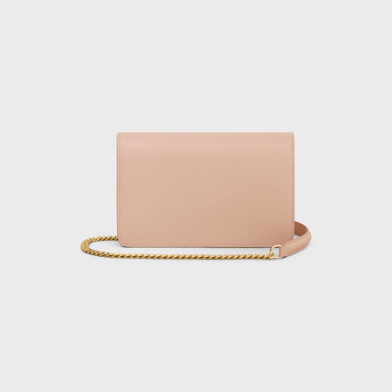 Crafted in a timeless nude leather, this elegant piece features the iconic Celine hardware clasp in gleaming gold-tone, making it instantly recognizable. The compact silhouette is perfect for carrying your cards, cash, and small essentials, while the delicate chain strap allows you to wear it crossbody or over the shoulder for hands-free convenience.