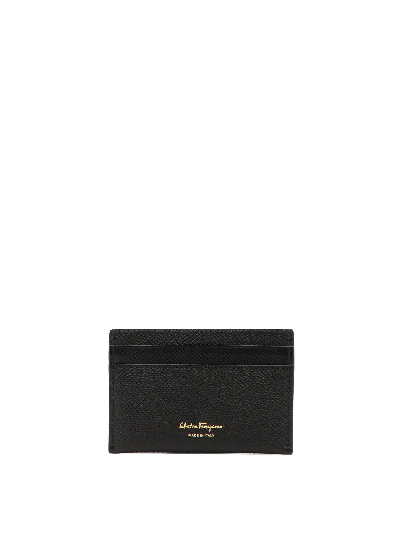 Elevate your everyday essentials with this sophisticated card holder from Ferragamo. Crafted from luxurious black leather with the iconic Gancini logo hardware in gold-tone finish, this sleek accessory combines Italian craftsmanship with timeless style. The slim silhouette features multiple card slots for organized storage while maintaining a refined, minimalist aesthetic. Perfect for the modern gentleman who appreciates understated luxury, this card holder effortlessly transitions from business meetings to evening occasions. Slip it into your pocket or briefcase for a polished finishing touch to any ensemble.