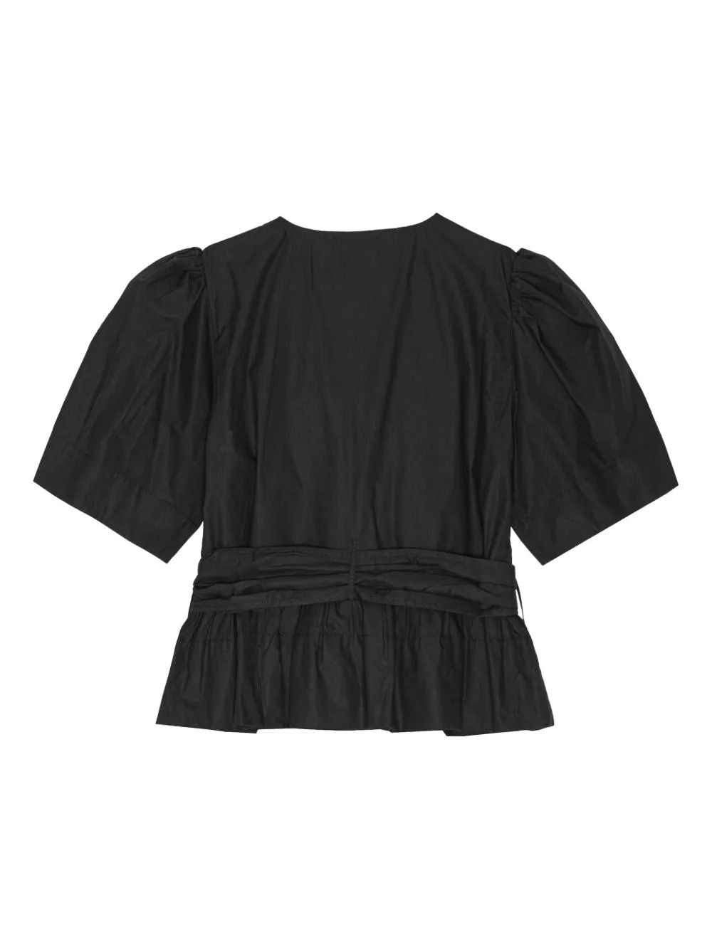 The puffed short sleeves and flattering V-neckline add romantic touches, while the peplum ruffle hem creates a playful silhouette. Crafted from washed fabric for a lived-in feel, this versatile piece effortlessly transitions from office to evening.