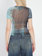T-shirt with Water print. Features a crew neckline, short sleeves, tulle lining, and stretch fabric. Slim fit.