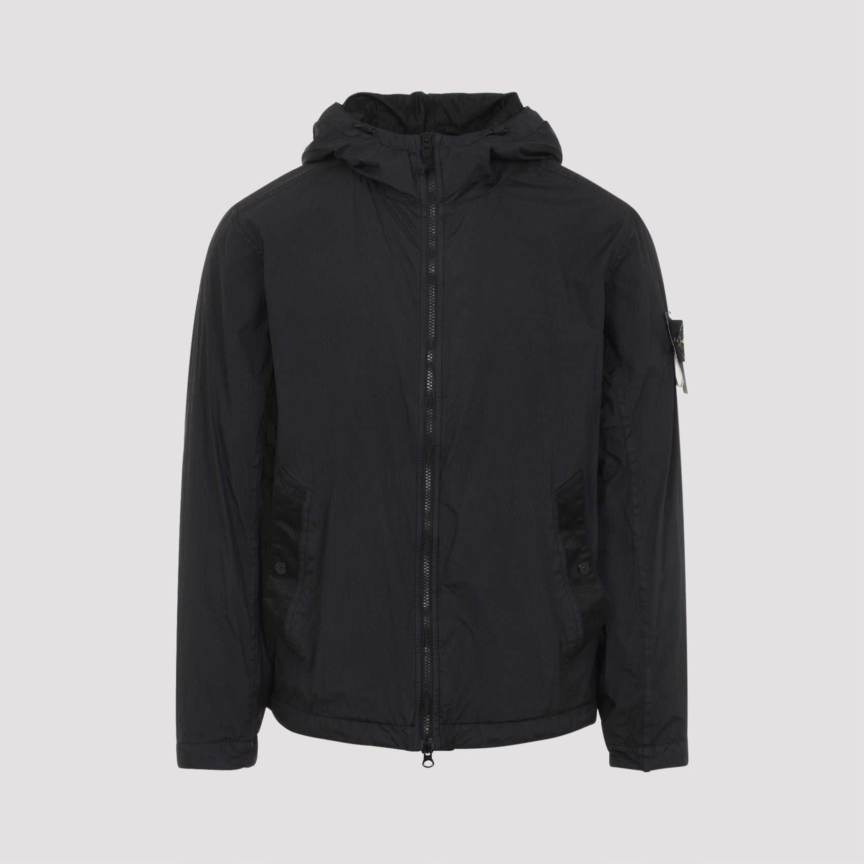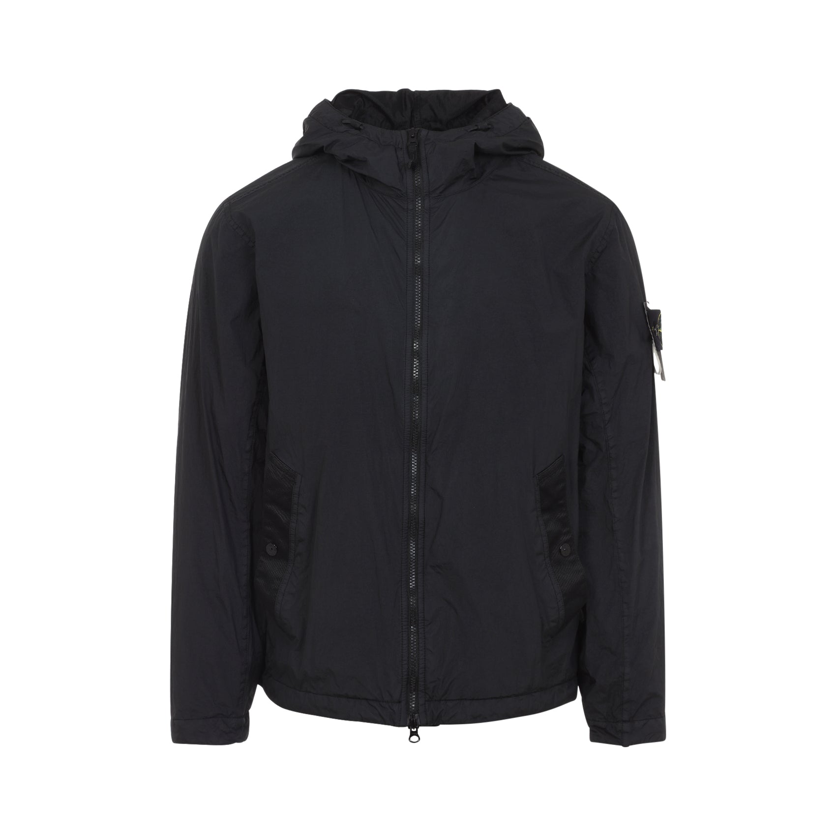 HOODED JACKET IN LIGHTWEIGHT RECYCLED NYLON REPS WITH A VERY DENSE WEAVE STRUCTURE. THE RESIN COATING MAKES IT WINDPROOF AND SLIGHTLY WATER-RESISTANT. THANKS TO THE RESIN TREATMENT, THE COLOUR PENETRATES THE MATERIAL UNEVENLY, GIVING THE SURFACE A CRINKLED APPEARANCE. GARMENT-DYED MODEL WITH THE ADDITION OF A SPECIAL ANTI-DROP AGENT. - HOOD WITH SHAPED VISOR AND FIXED ELASTIC DRAWSTRING WITH CORD LOCK - SLANTED WELT POCKETS WITH RIBBON EDGING AND SNAP BUTTON - STONE ISLAND BADGE ON THE LEFT SLEEVE - ADJUSTABLE CUFFS WITH SNAP BUTTON - ELASTICATED DRAWSTRING HEM - DOUBLE-SLIDER ZIP CLOSURE WITH INTERNAL NYLON TAPE LINING DESIGNER ID: L1S154100001S0A23 V0029