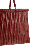 THE WEAVE BIG IS A MORE CONTOURED AND ROUNDED VERSION OF THE TRIPLE JUMP BAGS. UNLINED AND WITH A TOP OPENING, THIS SOFT BUFFALO CALFSKIN BAG FEATURES ELEGANT WOVEN HANDLES AND A DIAGONAL WEAVE THAT MAINTAINS ITS SHAPE. IT IS THE IDEAL ACCESSORY FOR A RELAXING SUMMER EVENING. A PENDANT WITH AN ANTIQUE ST. CHRISTOPHER MEDAL, IN HOMAGE TO THE PATRON SAINT OF TRAVELLERS, IS HAND-STITCHED INSIDE EACH DRAGON DIFFUSION BAG: THE MARK OF AUTHENTICITY. - HAND-WOVEN BASKET - BUFFALO CALF LEATHER - UNLINED DESIGNER ID: 8805 POPPY RED W 35 X 25 H X 15 D CM