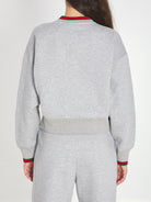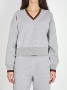 Light grey cotton jersey sweatshirt. Features a V-neck with Web motif, long sleeves, and ribbed finishes. Regular fit.