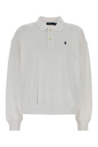 This classic white cotton blend polo shirt from Polo Ralph Lauren combines timeless style with modern comfort. Featuring long sleeves and the iconic polo collar, this versatile piece effortlessly transitions from casual weekends to smart-casual office settings.
