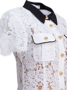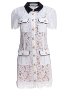 WHITE LACE CONTRAST COLLAR MINI DRESS