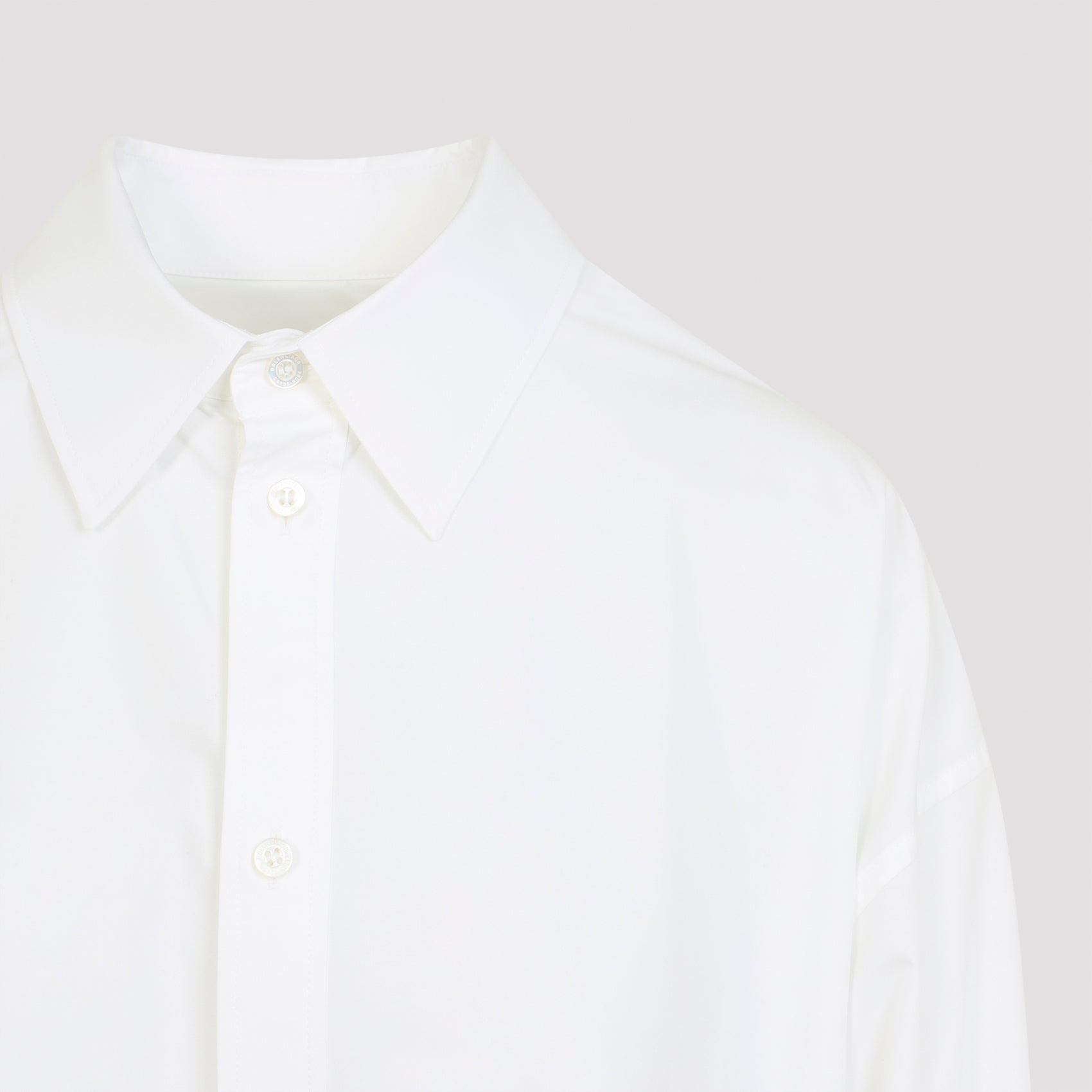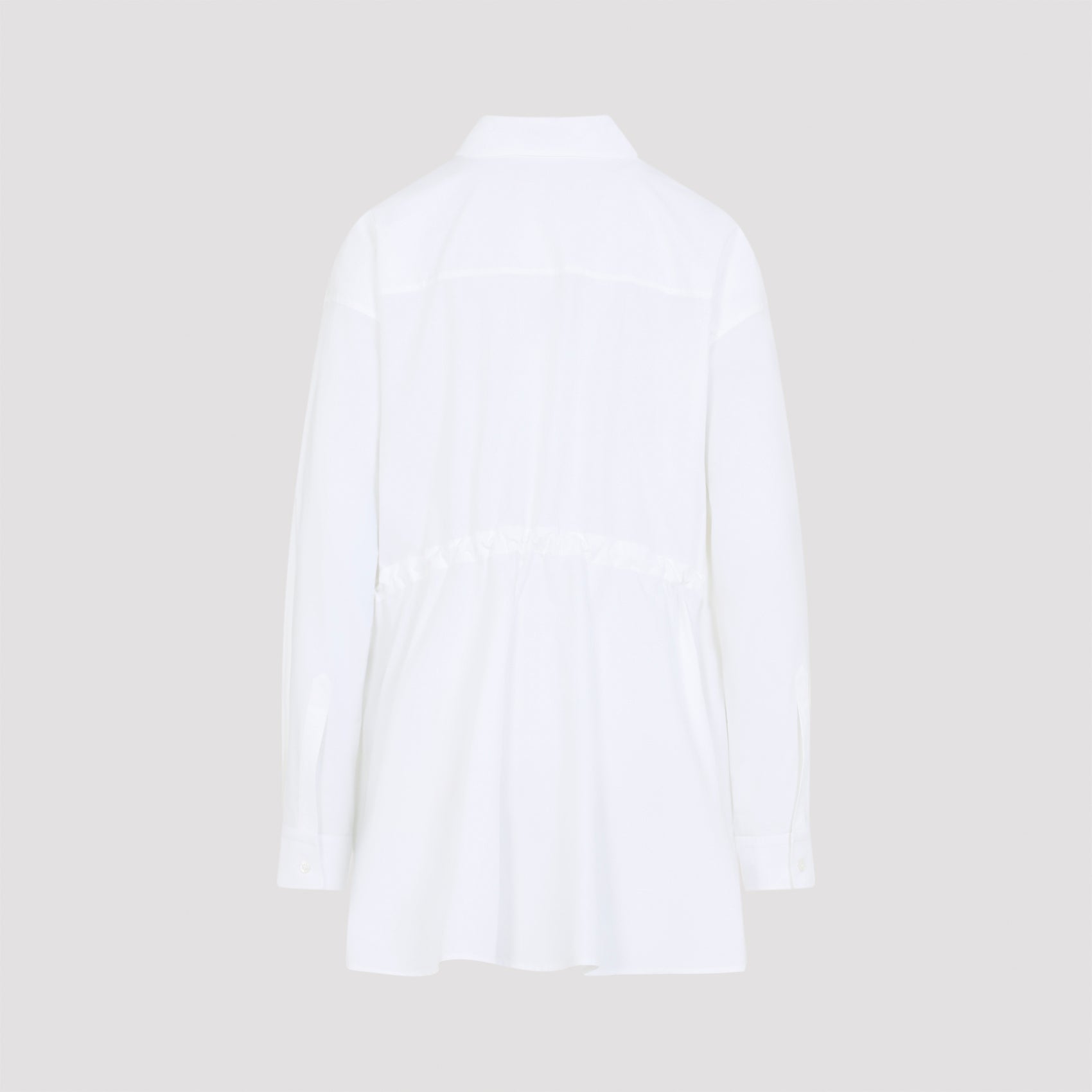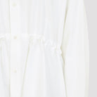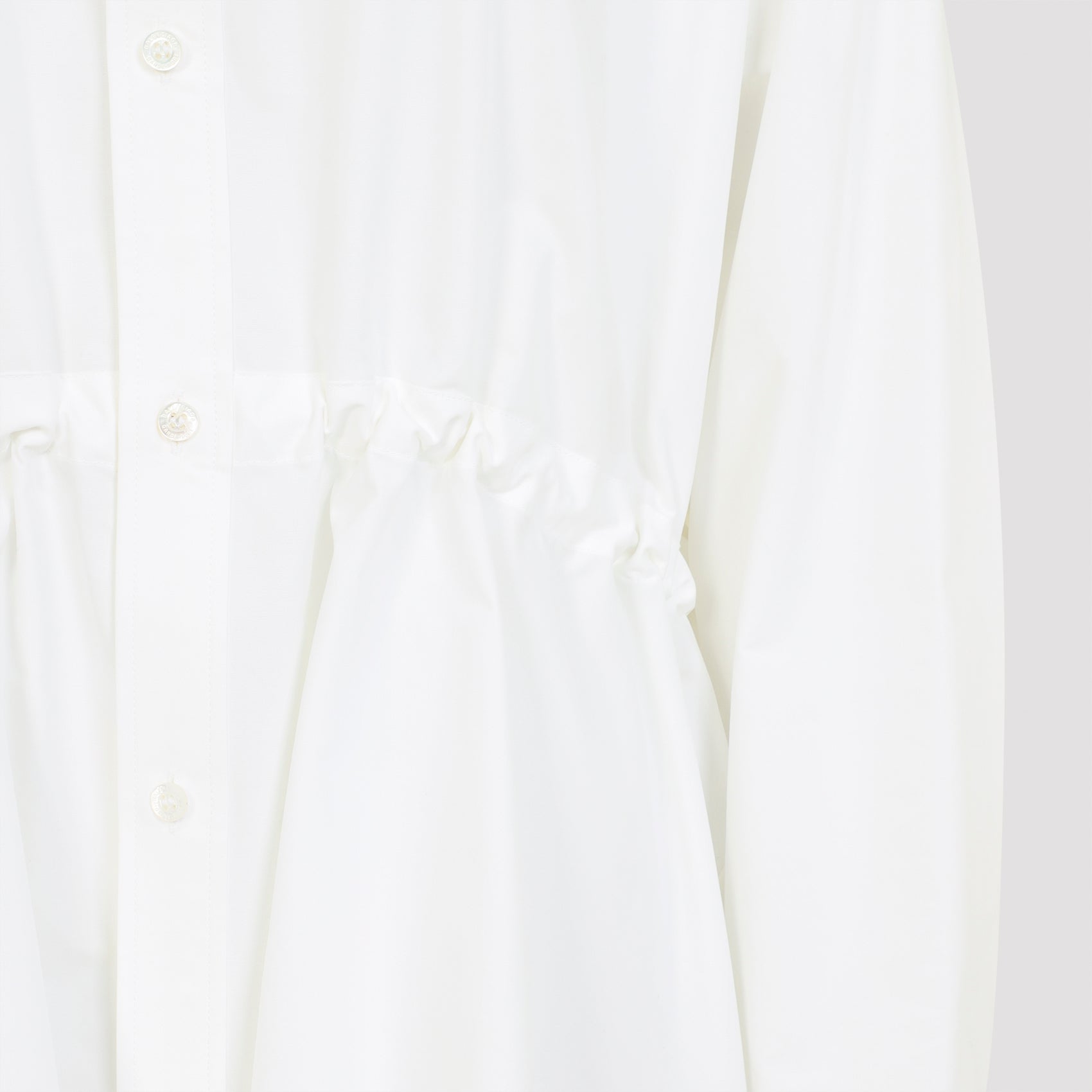 BALENCIAGA WHITE COTTON HOURGLASS DRESS. PURE WHITE COTTON DRESS, POINTED COLLAR, FRONT BUTTONED FASTENING, ELASTIC WAIST, DROPPED SHOULDERS, LONG SLEEVES, BUTTONED CUFFS, STRAIGHT HEM, HOURGLASS DESIGN.
