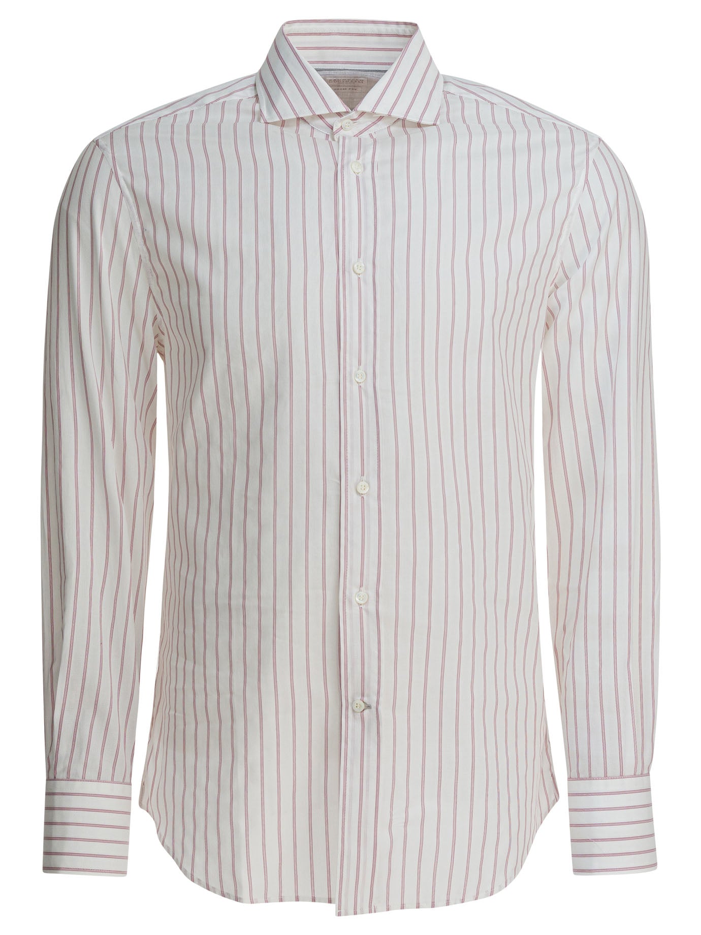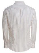 Elevate your wardrobe with this impeccably crafted white cotton shirt from Brunello Cucinelli. Featuring refined vertical stripes and a sophisticated slim fit silhouette, this long-sleeve button-up exemplifies Italian luxury and timeless elegance.
