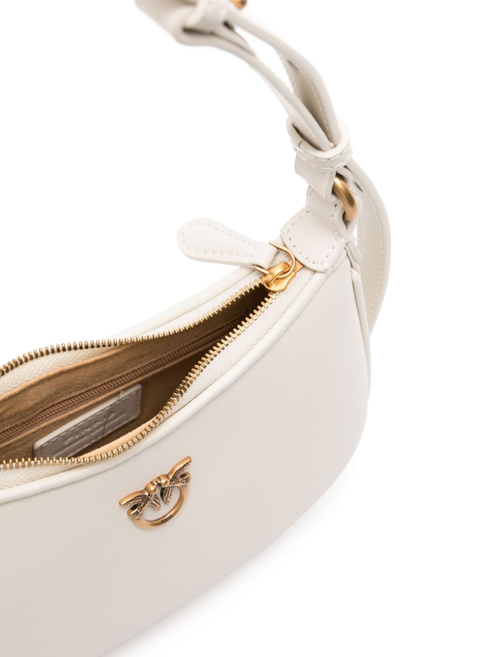 WHITE CALF LEATHER SMOOTH GRAIN SIGNATURE LOVE BIRDS PLAQUE TOP ZIP FASTENING ADJUSTABLE SHOULDER STRAP MAIN COMPARTMENT INTERNAL LOGO PATCH INTERNAL ZIP-FASTENING POCKET FULL LINING