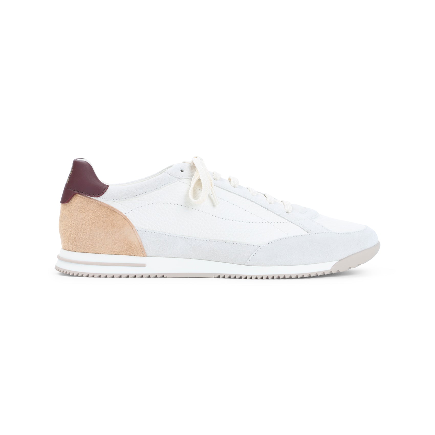 Brunello Cucinelli presents these exquisite white leather sneakers, a perfect blend of Italian craftsmanship and contemporary style. Crafted from premium white leather with refined beige and brown leather details at the back, these low-top sneakers feature a classic lace-up fastening and a comfortable round toe silhouette.