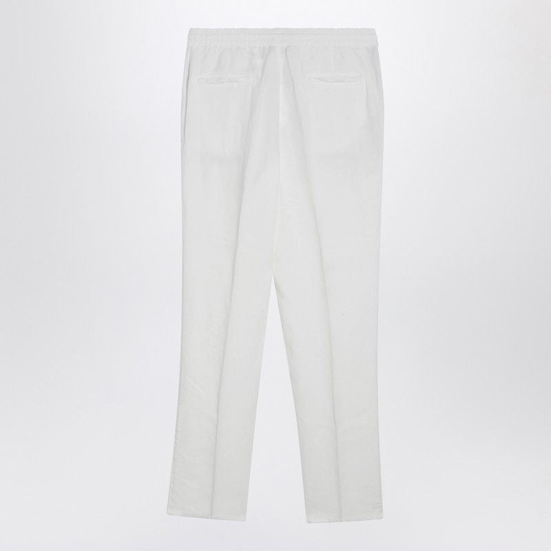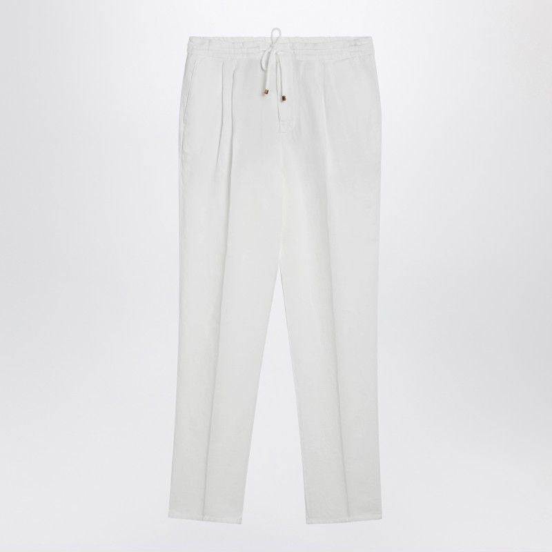 WHITE LINEN DRAWSTRING TROUSERS