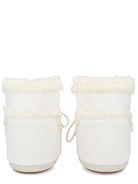 Embrace winter in iconic style with these Moon Boot white sheepskin and cow suede boots. Crafted from a luxurious blend of 60% sheepskin and 40% cow suede, these cold-weather essentials feature plush fur trim and a signature rounded silhouette that's instantly recognizable.