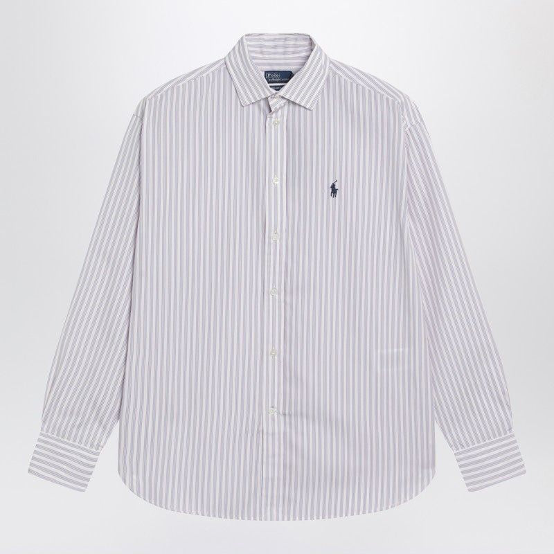 Elevate your everyday wardrobe with this classic white striped shirt from Polo Ralph Lauren. Crafted from premium cotton, this relaxed-fit button-up features timeless blue and red stripes that add a refined touch to any casual ensemble.