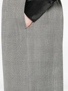 BEIGE CHECKED PATTERN ELASTICATED WAISTBAND STRAIGHT LEG SIDE POCKETS MID-RISE WAIST