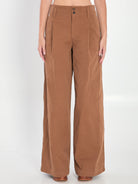 Trousers in cotton canvas in “Mustard Brown.” Featuring a wide-leg fit, high waist, front zip closure with engraved Chloé buttons, and side and back welt pockets.