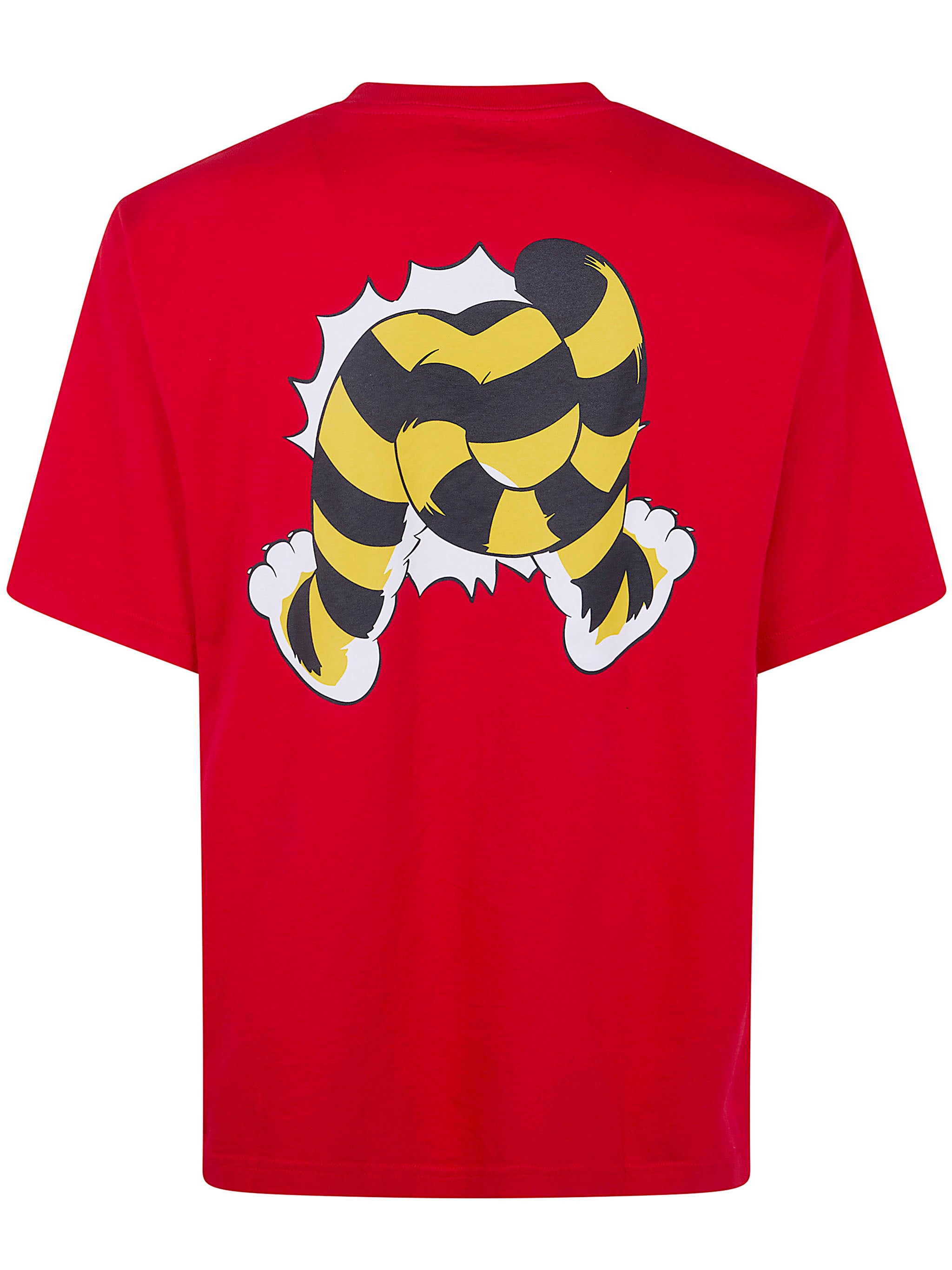 Make a bold statement with this playful "Wild Tiger" oversized t-shirt from Kenzo. Featuring an eye-catching cartoon tiger graphic adorned with hearts and whimsical details, this vibrant red tee brings a fun, artistic edge to your casual wardrobe.