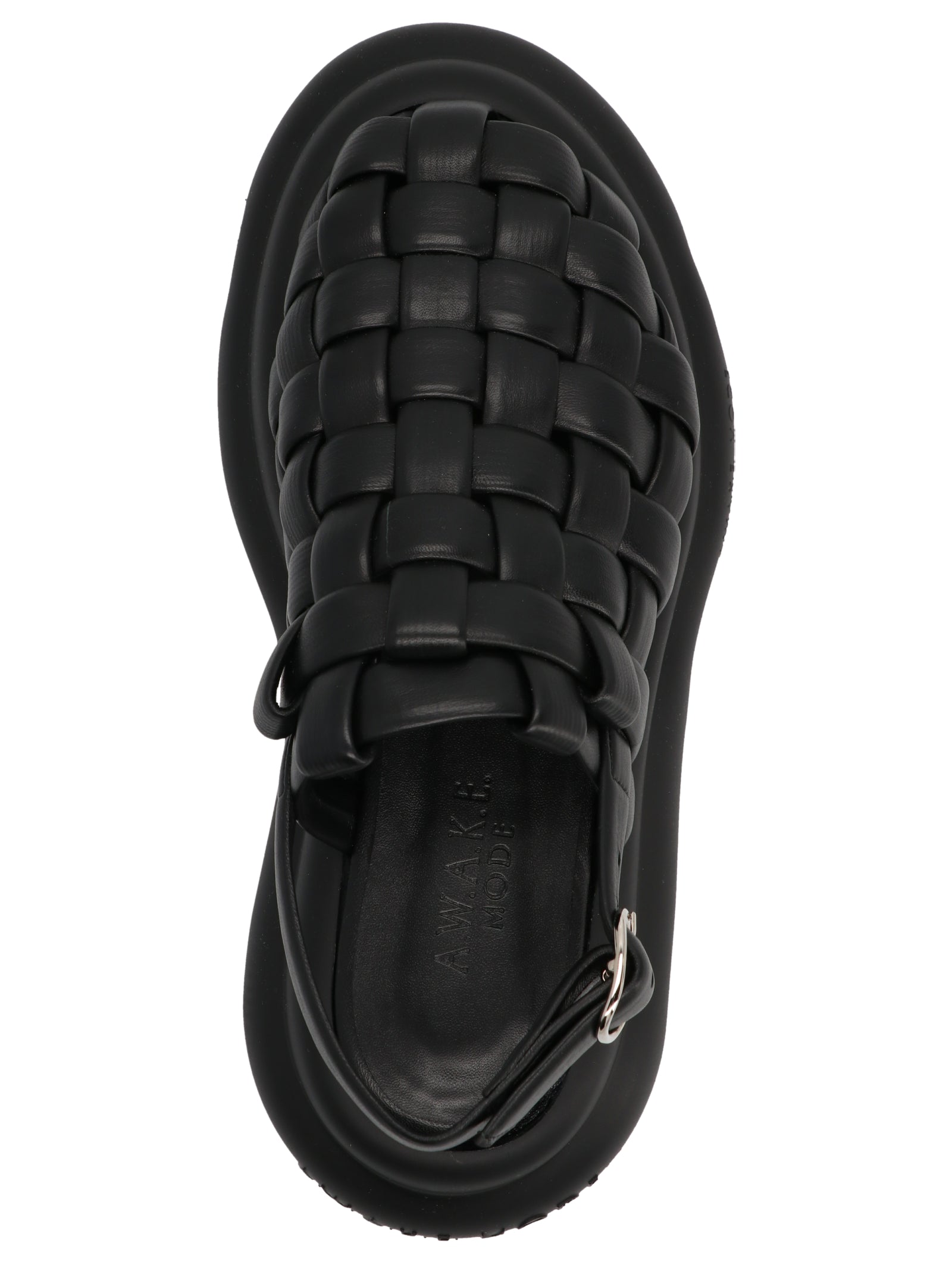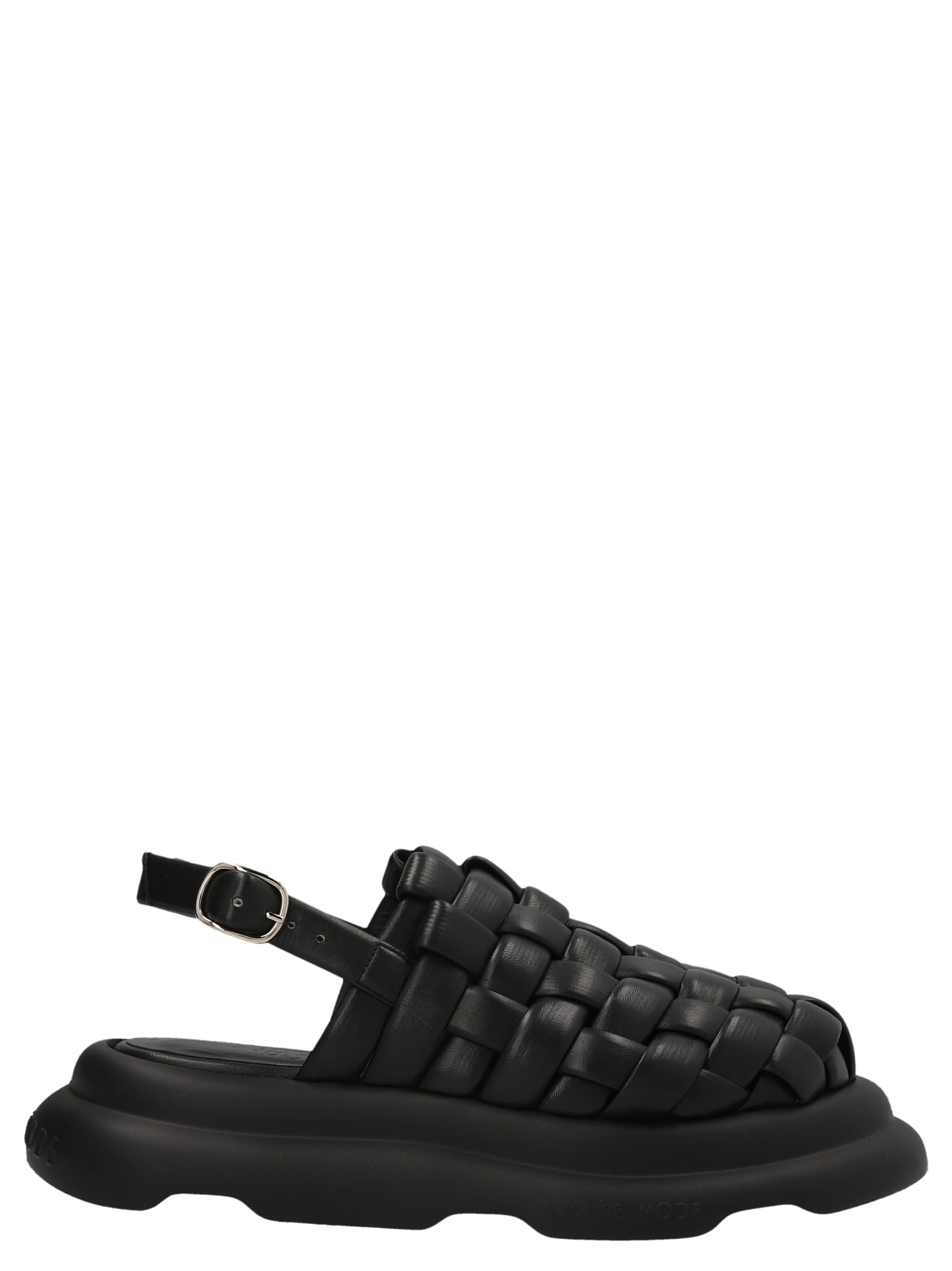 Introducing the 'Wilma Chubby Sport' sabots from A.W.A.K.E. MODE, a bold statement in contemporary footwear design. These distinctive sabots feature intricately braided leather construction with an adjustable slingback strap for a customized fit.