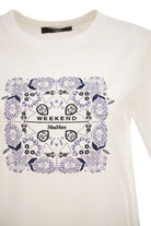 Elevate your everyday wardrobe with this sophisticated cotton t-shirt from Weekend Max Mara. Crafted in pure cotton jersey, this basic tee features a distinctive printed motif and elegant embroidery on the front, adding an artistic touch to a classic silhouette.