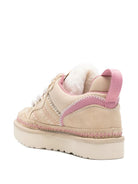 Elevate your everyday style with the Ugg Lowmel Meadow Sneakers, a perfect blend of comfort and contemporary design. Crafted from premium 100% suede leather with a durable rubber sole, these low-top sneakers feature luxurious fleece lining and playful pink accents that add a feminine touch to the neutral beige colorway.