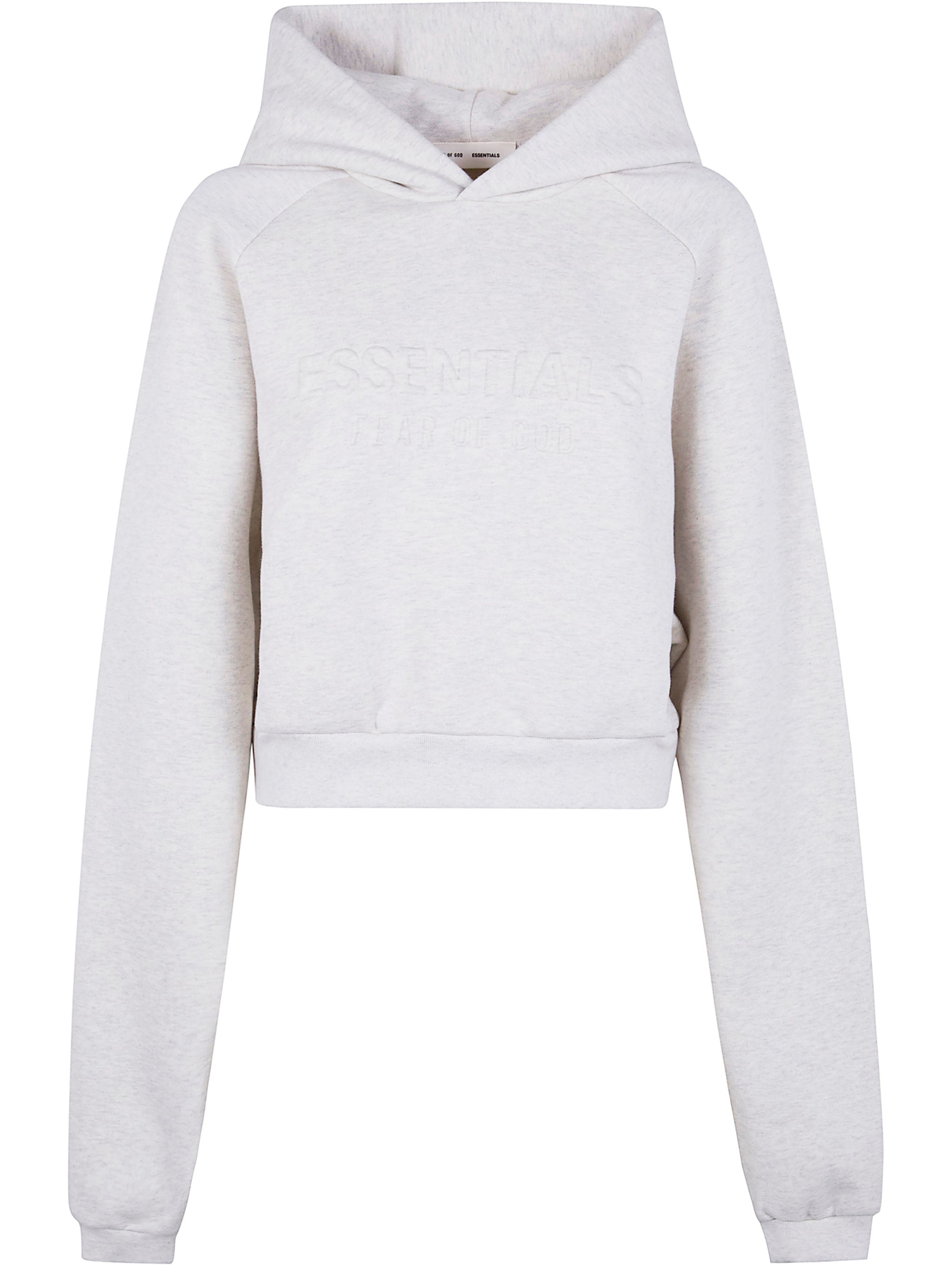 The relaxed raglan sleeve design and cropped silhouette create a modern, fashion-forward look that pairs effortlessly with high-waisted jeans, leggings, or joggers. The signature ESSENTIALS embossed logo adds subtle branding to this minimalist piece.