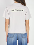 Elevate your everyday wardrobe with this Balenciaga Women's Masking Tape T-Shirt in faded black. Crafted from 100% premium cotton, this medium-fit tee offers exceptional comfort and breathability for all-day wear. The signature Balenciaga masking tape logo detail adds a contemporary edge to this essential piece.