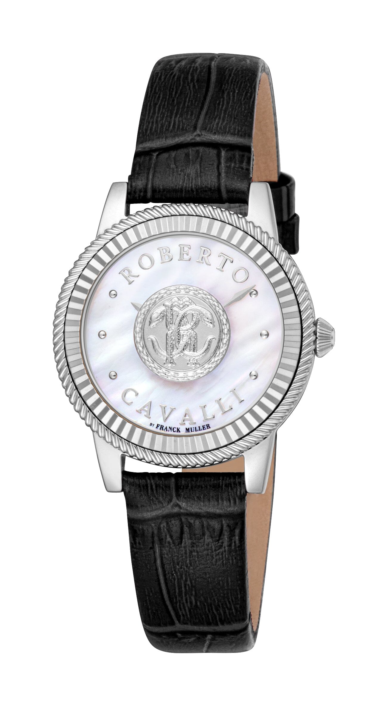Women's Roberto Cavalli by Franck Muller Black Leather Strap Silver Quartz Watch RV1L228L0011