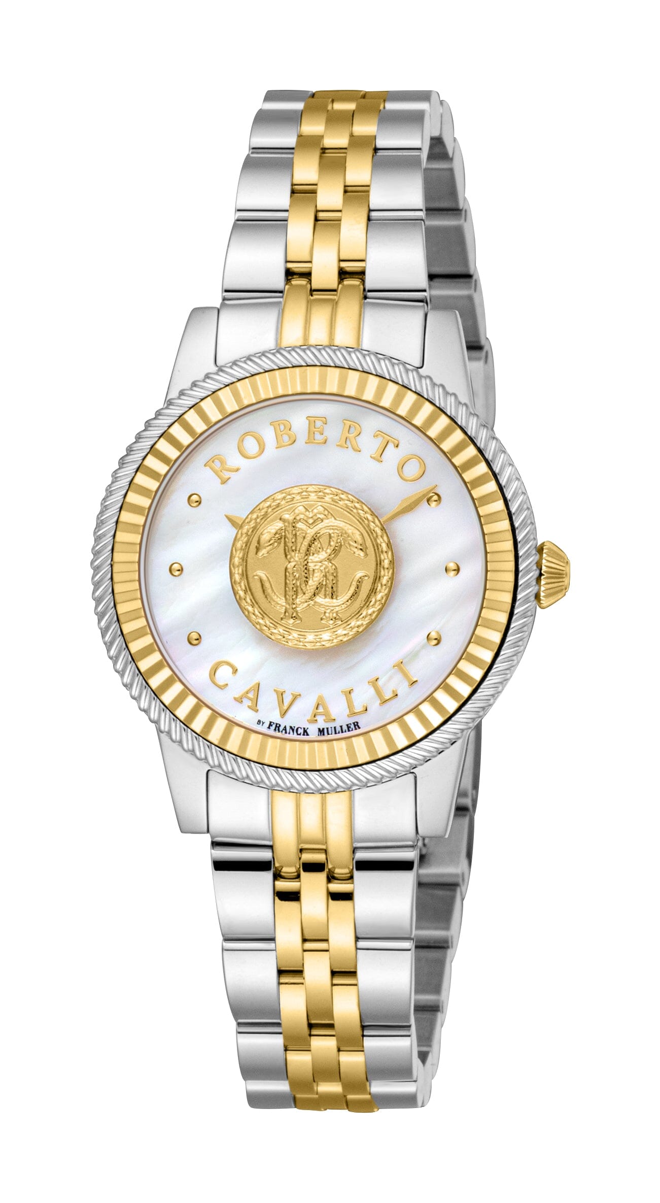 Women's Roberto Cavalli by Franck Muller Stainless Steel Two Tone Silver & Gold Quartz White MOP Watch