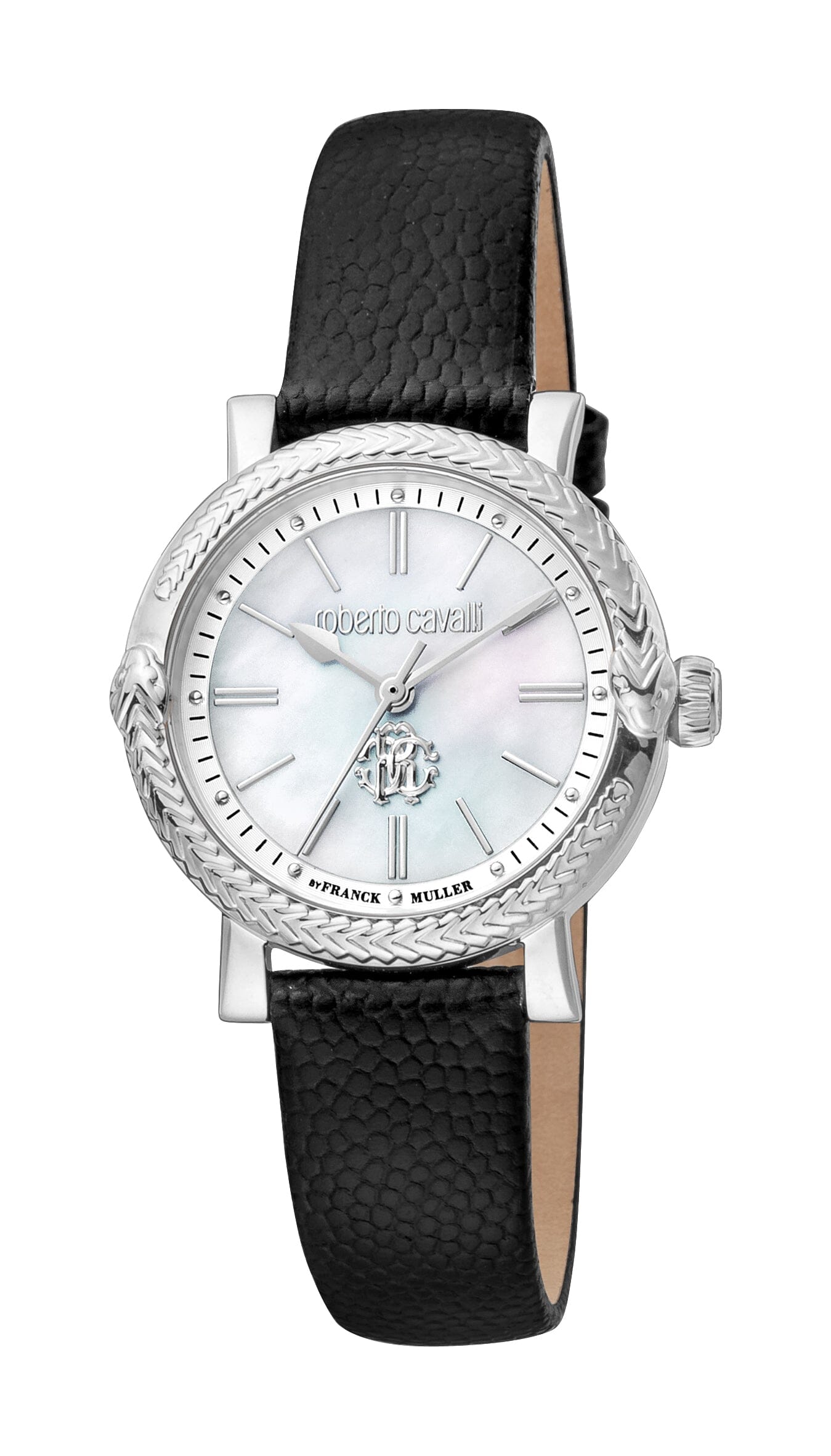Women's Roberto Cavalli by Franck Muller White MOP Silver Quartz Black Watch RV1L193L0011