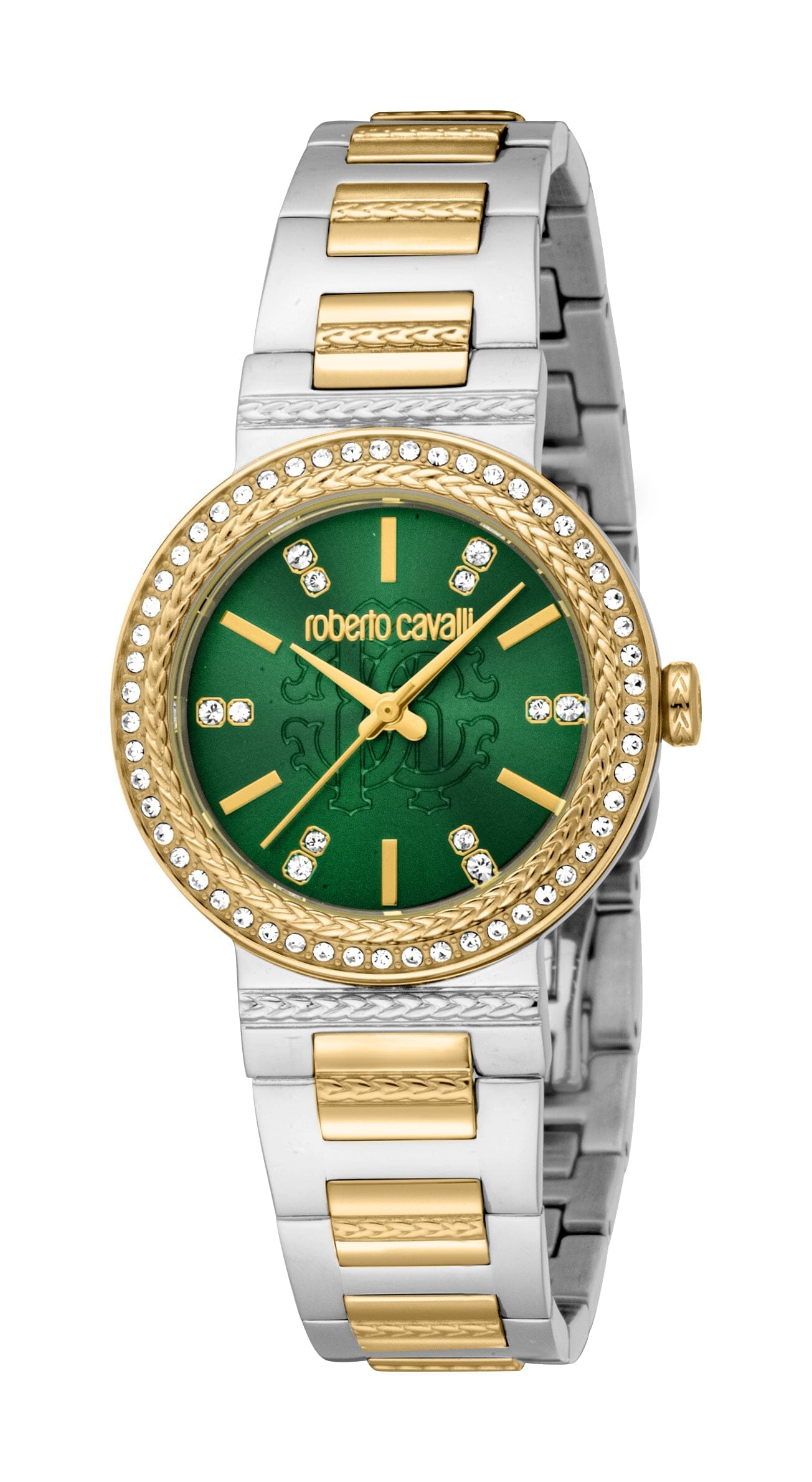 Women's Roberto Cavalli Glam Dark Green Dial Two Tone Silver & Gold Quartz Watch