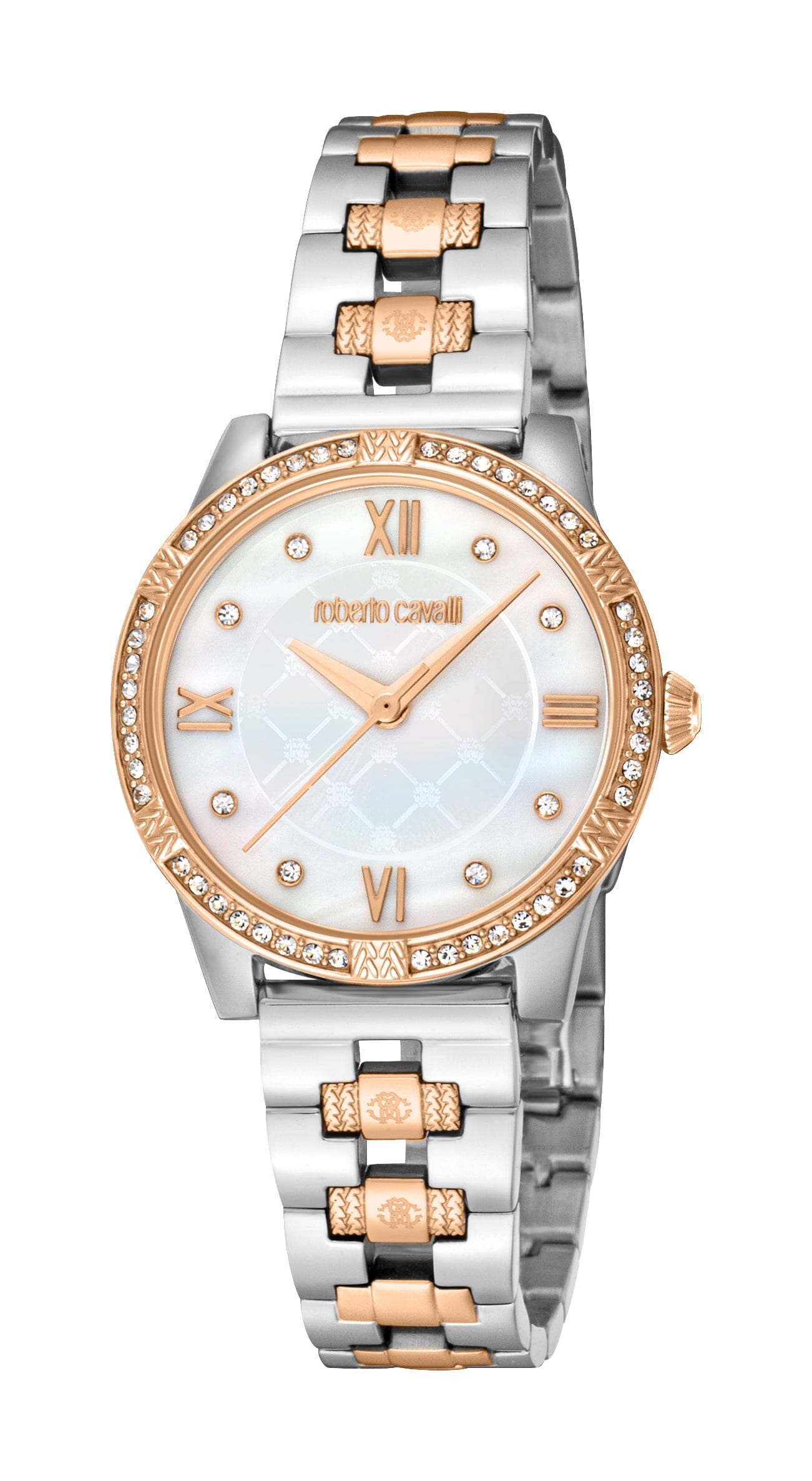 Women's Roberto Cavalli Glam White MOP Two Tone Silver & Rose Gold Quartz Watch