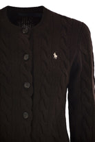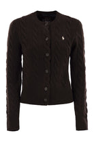 THIS CREW NECK CARDIGAN WITH BUTTONS IS MADE FROM A SOFT BLEND OF ITALIAN WOOL AND CARDED CASHMERE WORKED INTO A CABLE KNIT PATTERN AND IS EMBELLISHED WITH AN EXCLUSIVE EMBROIDERED PONY ON THE CHEST. - SLIM FIT - HIP LENGTH - RIBBED CREW NECK - RIBBED BUTTON CLOSURE - LONG SLEEVES WITH RIBBED CUFFS - RIBBED HEM - EXCLUSIVE EMBROIDERED PONY ON THE LEFT SIDE OF THE CHEST DESIGNER ID: 211972104 007