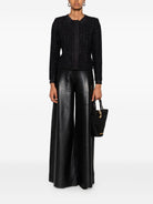 BLACK TWEED TEXTURE BUTTON FASTENING LONG SLEEVES ROUND NECK CROPPED HEM