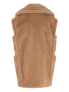 Elevate your layering game with this luxurious Max Mara Wool Double-Breasted Vest in a sophisticated brown camel hue. Crafted from a premium wool blend, this sleeveless vest features a classic double-breasted front with a refined lapel collar that exudes timeless elegance.