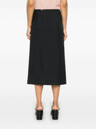 Elevate your wardrobe with this sophisticated Gucci wool gabardine skirt, a timeless piece that exudes refined elegance. Crafted from premium wool gabardine in classic black, this midi-length skirt features a modern wrap-style front with an asymmetric slit that adds contemporary flair to its tailored silhouette.