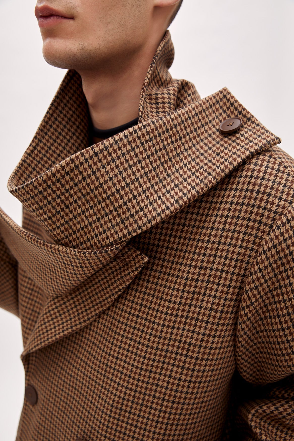 Wool Houndstooth Long Coat