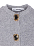 GREY WOOL KNIT LONG SLEEVES CREW NECK JEWELLED BUTTONS RIBBED HEM
