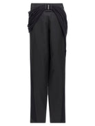 Elevate your wardrobe with these exquisite wool trousers from JEAN PAUL GAULTIER. Featuring a striking front tulle draping detail, these high-waisted pants blend architectural design with refined elegance.