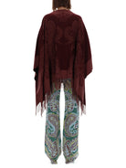 Embrace effortless elegance with this luxurious wool poncho from Etro. Crafted from 100% premium wool in Italia, this stunning piece features intricate paisley embroidery in rich burgundy tones with beautiful fringe detailing along the hem. The relaxed, draped silhouette offers both comfort and sophistication, making it perfect for layering during cooler seasons. Style it over fitted pants or jeans for a chic bohemian look, or drape it over a simple dress for an elevated casual ensemble. This versatile poncho effortlessly transitions from weekend outings to evening gatherings, bringing Italian craftsmanship and timeless style to your wardrobe.