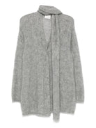 Embrace effortless elegance with this luxurious Wool Scarfed Cardigan from Forte Forte. Crafted in a soft grey wool blend, this open-front cardigan features a flattering V-neckline and long sleeves for cozy warmth.